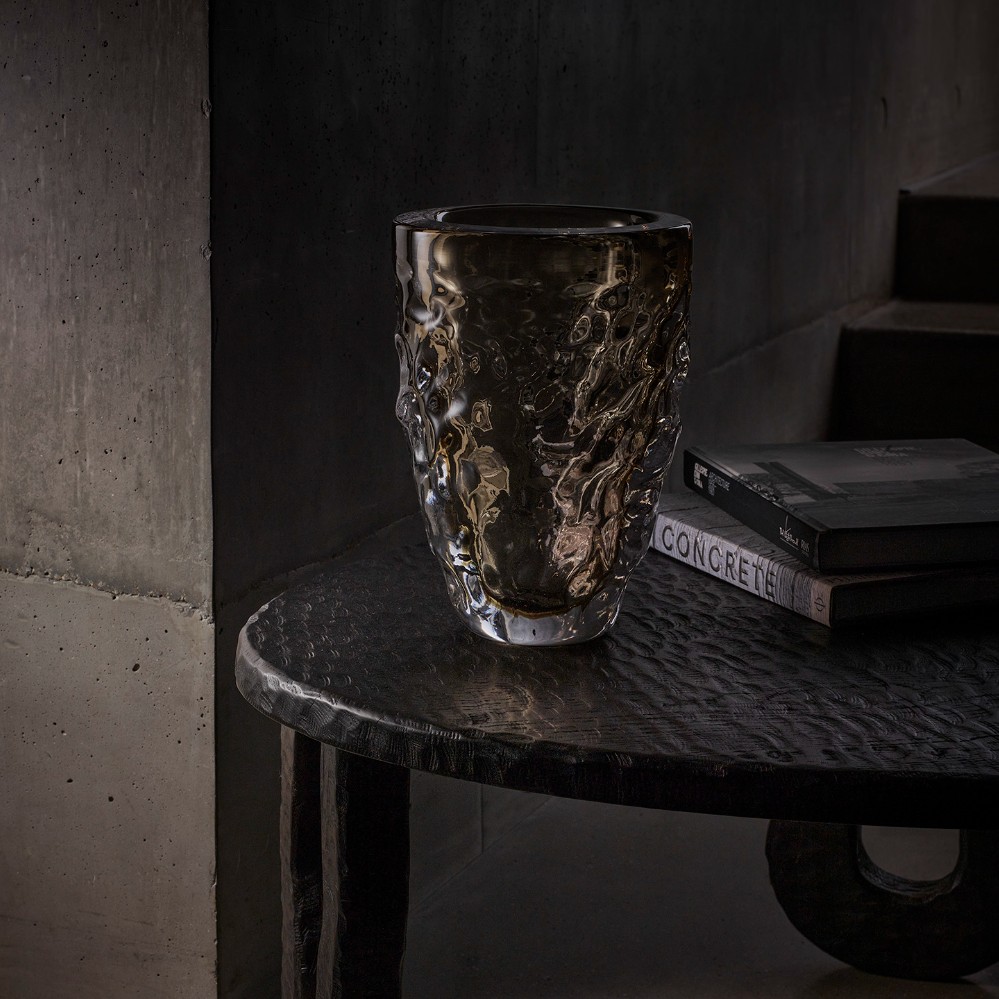 Lava is an untameable force of nature that has both inspired, and demanded respect, from civilizations since history began. The Lava Vase emulates the form of the slumbering giants that allow it to escape into the world – volcanoes. Featuring an inverted cone shape with an organic texture that mimics the rolling rivers of molten stone surging downhill, each piece is handcrafted in Murano, encapsulating the primordial fire that flows beneath our feet in glass of unparalleled clarity and quality.