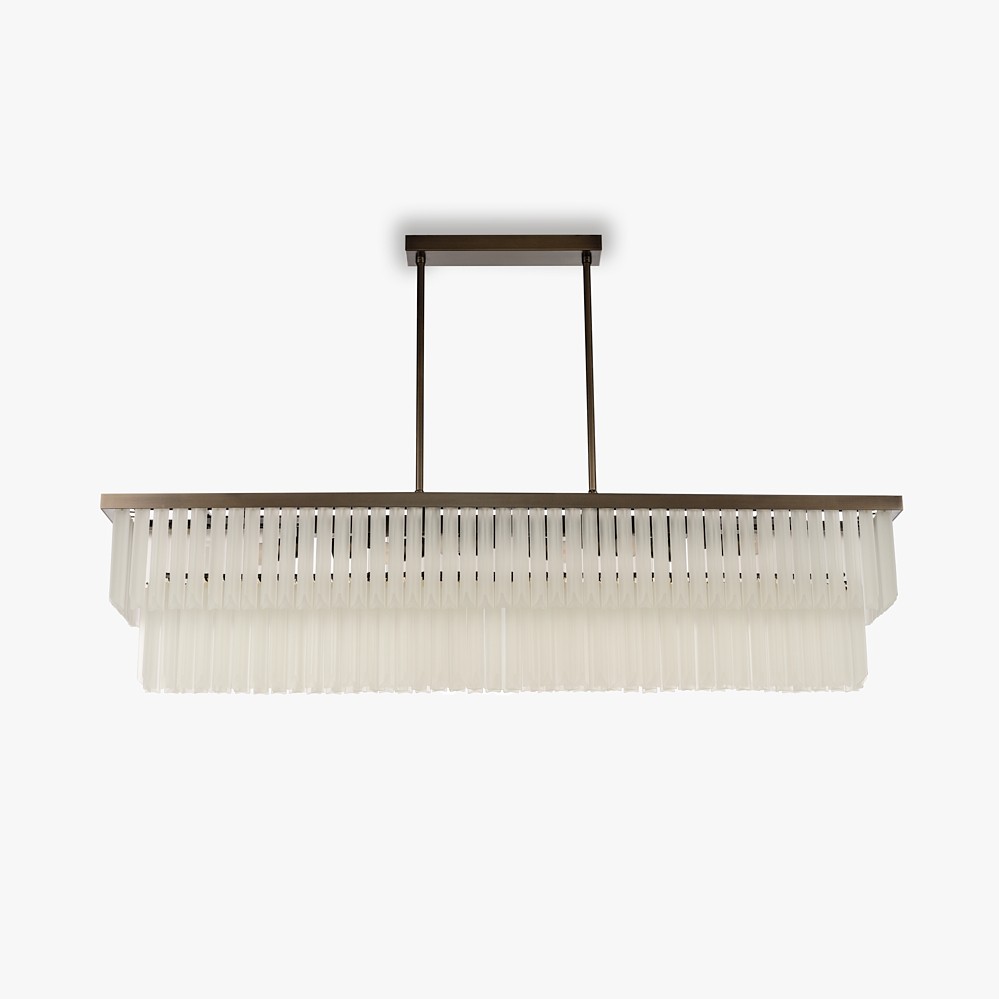 Based on our best selling Rectangular Chandelier (CL414), this stunning contemporary ceiling light is perfect over a breakfast bar or central island. Available in a number of glass and metal finishes, this chandelier can be tailored to perfectly fit into any design.