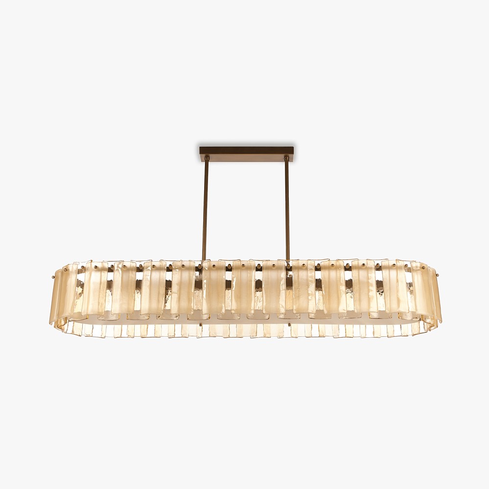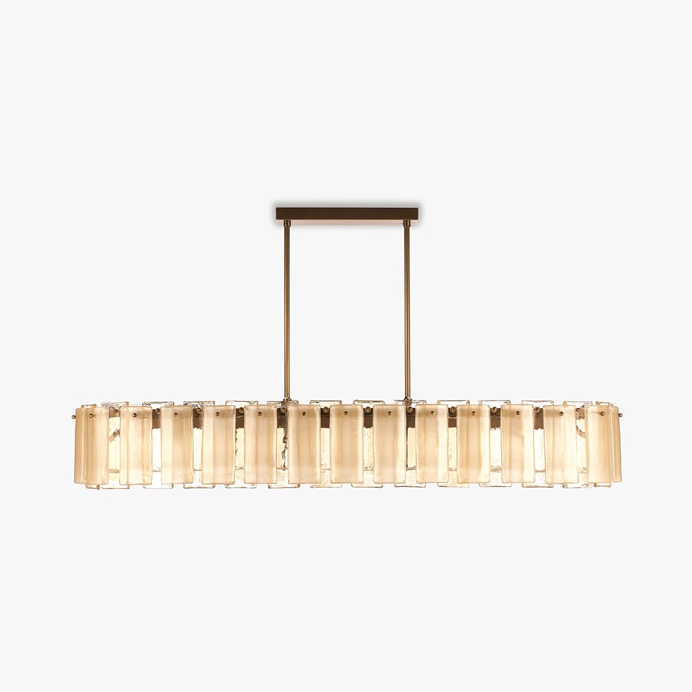Inspired by the cyclical waxing and waning Moon phases, the Lunar range features alternating panels of transparent and opaque Murano glass with subtle brushed metal detailing. The Lunar Oblong Chandelier introduces a new oblong shape that maintains the slim profile of the rectangular version but combines with the soft, feminine curves the round version to provide increased versatility for rooms of all shapes and sizes.