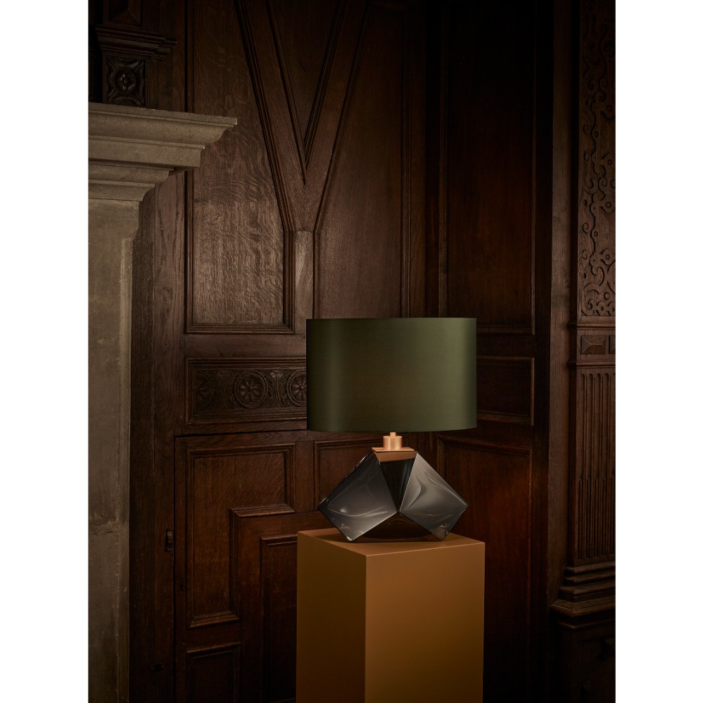 A stunning new table lamp, which is hand-made out of 4 layers of Murano Glass and then hand-polished for up to 12 hours to create the perfect faceted diamond shape. These striking table lamps are now available in a brand new two tone colourway with a solid colour encased in clear glass to add a contrasting look to these popular designs.Elegant, edgy and timelessly beautiful.